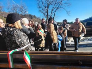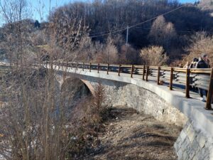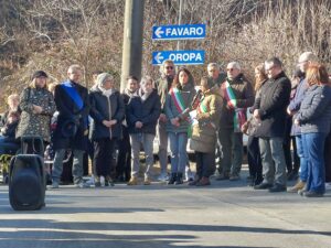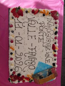 Inaugurazione del ponte tra valle e Favaro dopo i lavori di rifacimento parziale per ripristinare il passaggio di auto e mezzi pesanti interrotto dopo l’alluvione 2020 che aveva arrecato danni strutturali all’opera.